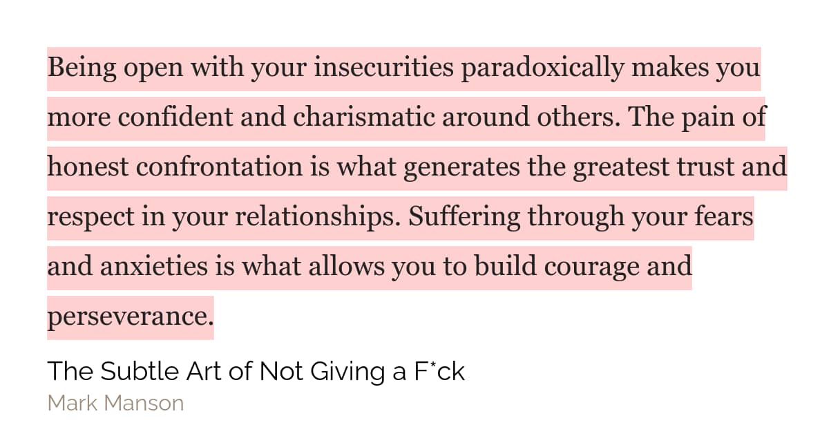 Now it doesn't seem so bad. Instead of thinking ugh I have to write this assignment, just look at your pizza slices and pick one to work on. Once that's done, move onto the next. Ideally you want the slices to be as small as possible making it super easy to complete each one. If you pair this with the momentum tip from above, you can do 1 slice per day and you’ll be done in no time! Procrastination is something we all do, so don't beat yourself up about it. Practice these techniques altogether and I promise you will find yourself being less distracted. If you made it this far, thank you for taking the time out of your day to read this. I appreciate it more than I can put into words :)(Note: If you enjoy this email, please consider forwarding it to someone who would get a lot out of it. If you were forwarded this email, you can sign up to receive it each Sunday evening. It’s free.) 💬 Highlight of the WeekResurfaced by readwise ✏️Insights of the week: